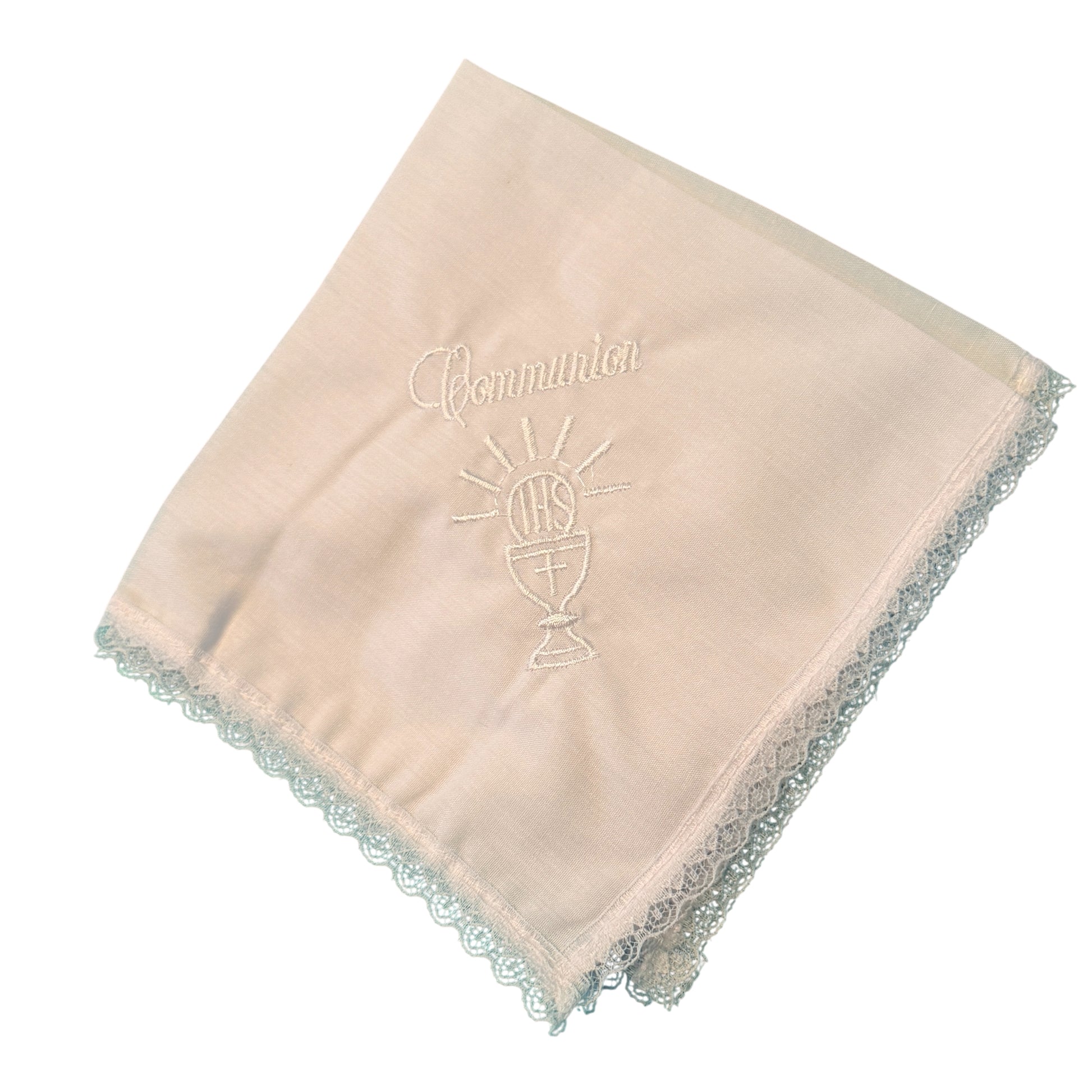 The satin arm bow features a traditional cross embellishment, symbolizing faith and purity. The matching handkerchief is delicately embroidered, making it perfect for photos, church ceremonies, or as a keepsake for memory boxes. The included First Communion certificate completes the set, offering a special place to record the date, parish, and celebrant.