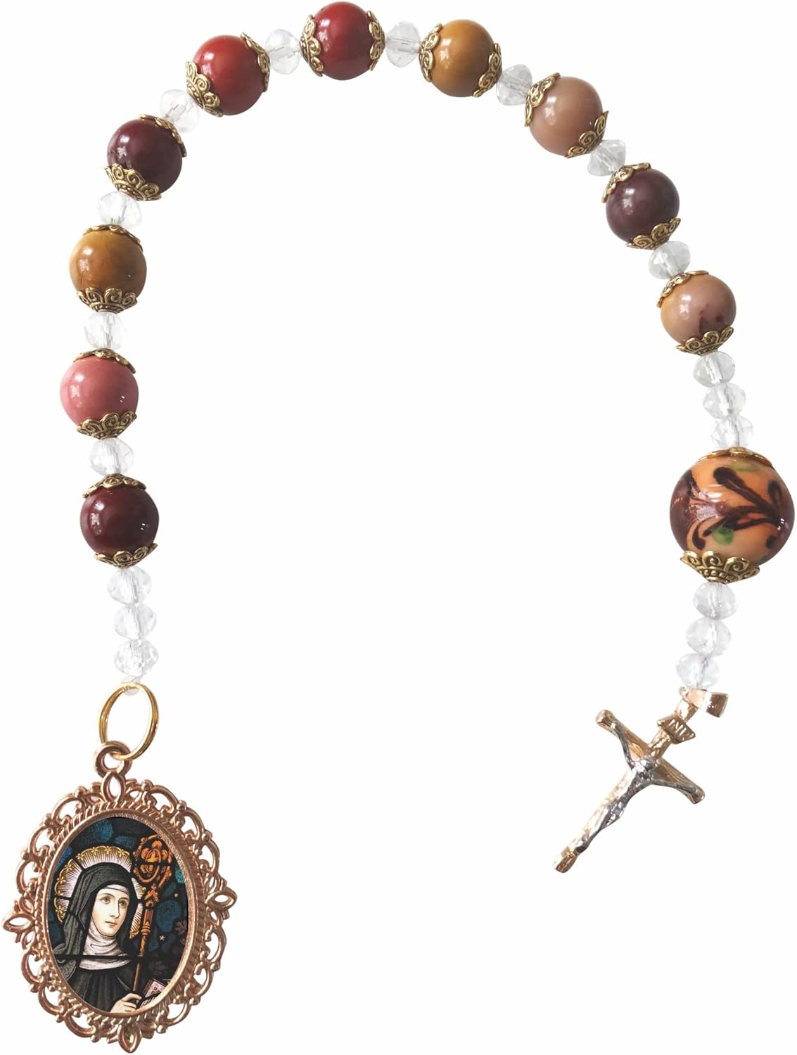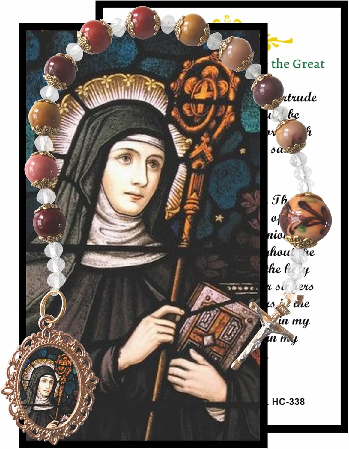 Saint Gertrude of Nivelles Patron of Cats and Cat Lovers Brown Agate Quartz Chaplet Pocket Purse Rosary with Prayer Card Holy Card Available in English and Spanish