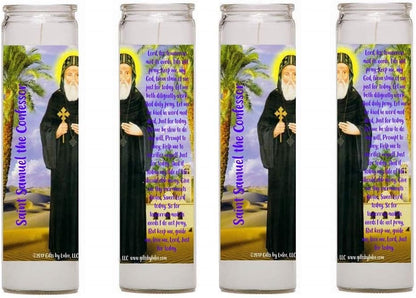 Saint Samuel The Confessor San Samuel el Confesor Set of Two 2 or 4 Glass Candles with Prayer Set de 2 o 4 Veladoras con Oracion